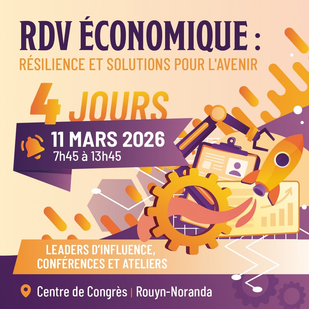 L’activité aura lieu le mercredi 11 mars, de 7 h 45 à 13 h 45, au Centre de congrès de Rouyn-Noranda. Sous le thème « Résilience et solutions pour l’avenir », elle réunira plusieurs conférenciers de renom :